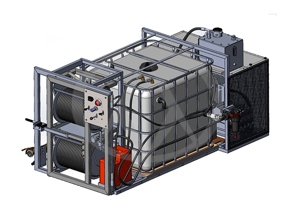 Каналопромывочная установка для промывки труб диаметром до 500 мм под монтаж в автомобиль.